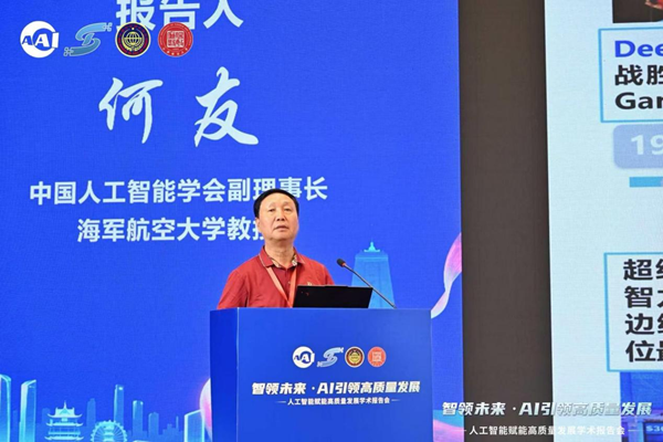 会议特邀两位中国工程院院士作主旨报告。中国工程院院士、海军航空大学教授何友院士以《人工智能发展前沿》为题,系统梳理了人工智能领域的理论基础、技术演进与产业发展路径,并重点对比分析了中美两国在人工智能领域的竞争格局与合作态势。