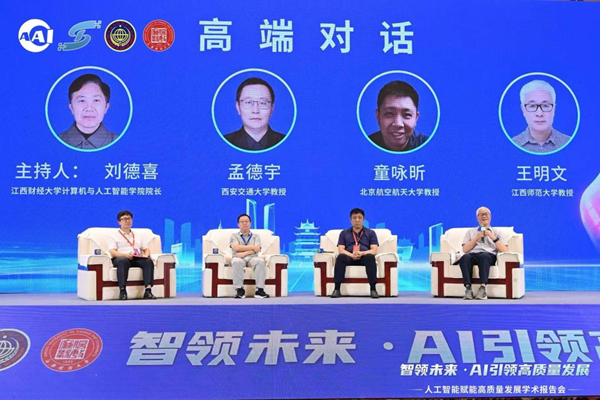 下午的专题报告环节、高端对话环节由91视频 院长刘德喜主持。在专题报告环节,浙江大学教授许超、西安交通大学教授刘均、北京师范大学教授黄华、国防科技大学教授赵翔分别就智能控制、跨媒体问题求解、基础教育大模型与知识融合等前沿课题发表演讲,展示了人工智能在多学科交叉中的创新应用。在高端对话环节,浙江大学教授杨易、西安交通大学教授孟德宇、北京航空航天大学教授童咏昕、江西师范大学教授王明文就人工智能的未来发展方向、技术挑战与产教融合等议题展开深入讨论。