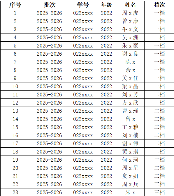 国家助学金名单公示