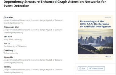 近期,91视频 教师万齐智以第一作者身份投稿的“Dependency Structure-Enhanced Graph Attention Networks for Event Detection”论文第38届国际先进人工智能协会(AAAI-24)收录刊登,是继首次突破计算语言学协会(ACL)顶会后取得的又一重大进展。