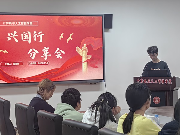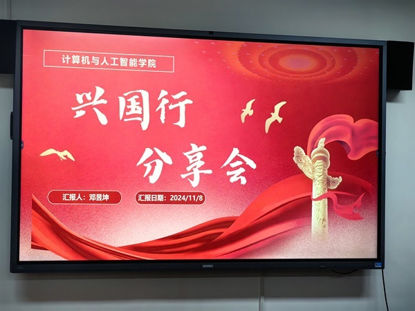 分享会伊始,在充满期待与激情的氛围之中,主持人邓昱坤明确指出此次分享会的目的——探寻红色足迹,体悟革命情怀。在分享环节,他深情地回顾了历时四天的兴国行活动,重现了活动中的精彩瞬间与感人故事,让同学们仿佛再次置身于那段激情燃烧的岁月。