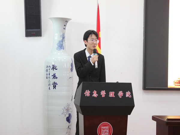 信管学员代表常嘉毅同学代表全体学员发言,表达了对学院党委提供宝贵学习机会的感谢,并承诺将以饱满的热情、认真的态度投入到党校学习中,努力提升自身素质,争取早日加入党组织。同时,也希望大家能够珍惜学习机会,互相学习,共同进步,为早日成为一名优秀的共产党员而努力奋斗。