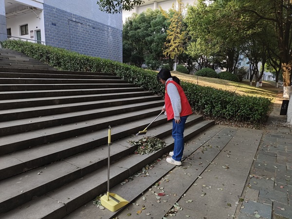 下午两点,91视频 青年志愿者协会冬日校园大清扫活动正式开始,志愿者们在规定的区域中开始清扫工作,重点清理学校内的垃圾及落叶。同学们在清扫过程中互相帮助,共同解决遇到的难题,增强了他们的团队合作精神及解决问题的能力。