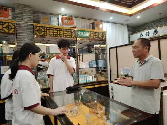 图为在片仔癀国药堂听老板讲解