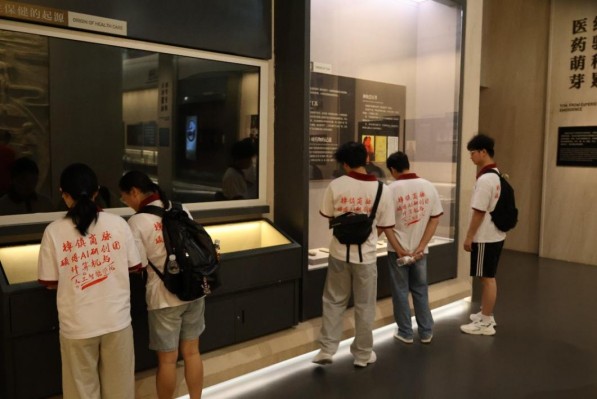研学行程的首站,研创团走进樟树市博物馆。在文物熏陶下,团员们沉浸于樟树中医药发展史:馆内丰富馆藏与场景复原,系统展现其从远古草药认知、唐宋药材集散到明清成全国药市的辉煌历程。从早期采药工具到古代制药器具,每件展品都承载着中医药智慧,让团员们深切感受樟树中医药文化的源远流长。