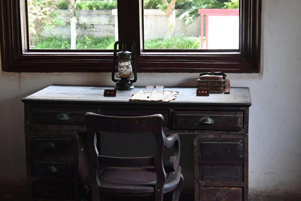 图为毛泽东旧居书桌场景