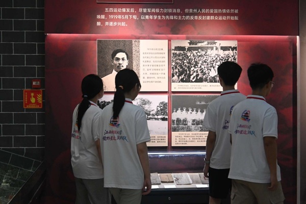 转战中共贵州省工委旧址,气氛愈发凝重。狭小的秘密空间里,锈迹斑斑的铁镣、泛黄的《挺进报》复印件,无声诉说着地下斗争的惊心动魄。讲解员讲述林青等先烈在白色恐怖下坚守信仰、英勇就义的故事时,队员们屏息凝神,在复原的地下工作场景前久久伫立。“展墙上‘革命理想高于天’的大字,不是口号,是先烈用生命书写的誓言。”实践队队员胡振坤深有感触。