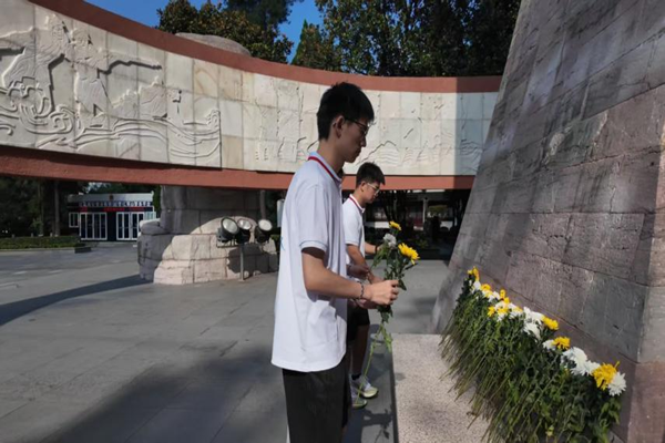 图为实践队队员在纪念碑前献花