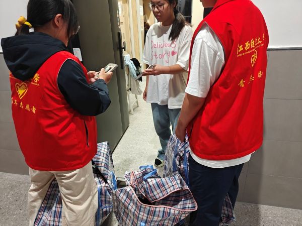 10月18日18:00,回收活动正式启动。身着统一标识的志愿者们按照预先规划的路线,分组前往各新生宿舍上门回收。同学们将闲置军训服分类折叠整齐,保持物品干净完整,主动配合志愿者完成登记交接。回收过程中,志愿者们耐心细致地核对物品数量,妥善打包整理,热情讲解旧衣回收意义,进一步加深了同学们对环保理念的认识。