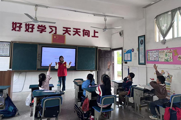 11月5日,91视频 支教队前往岭背小学,开展了一场以“霞光里的旗帜,岁月里的英雄”为主题的爱国主义教育支教活动。本次活动旨在通过生动有趣的课堂形式,引导孩子们了解国旗、国徽的含义,学习英雄事迹,培养爱国情怀。