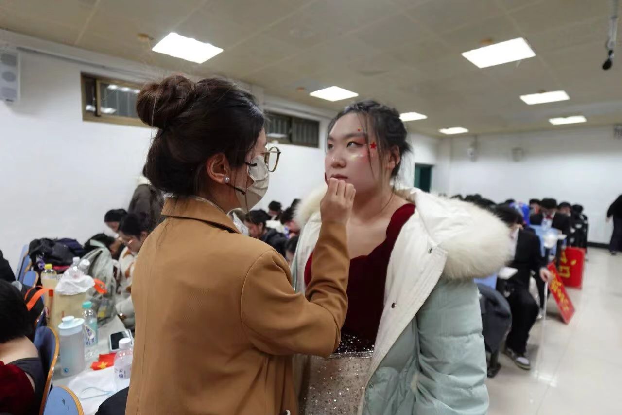 赛场之上的亮眼表现,源于幕后数十个日夜的潜心雕琢。自比赛筹备启动以来,学院合唱团队的同学们便迅速进入了紧张的备赛训练:每当夜幕降临,排练厅便亮起暖黄灯光,成为他们打磨旋律的“第二课堂”。